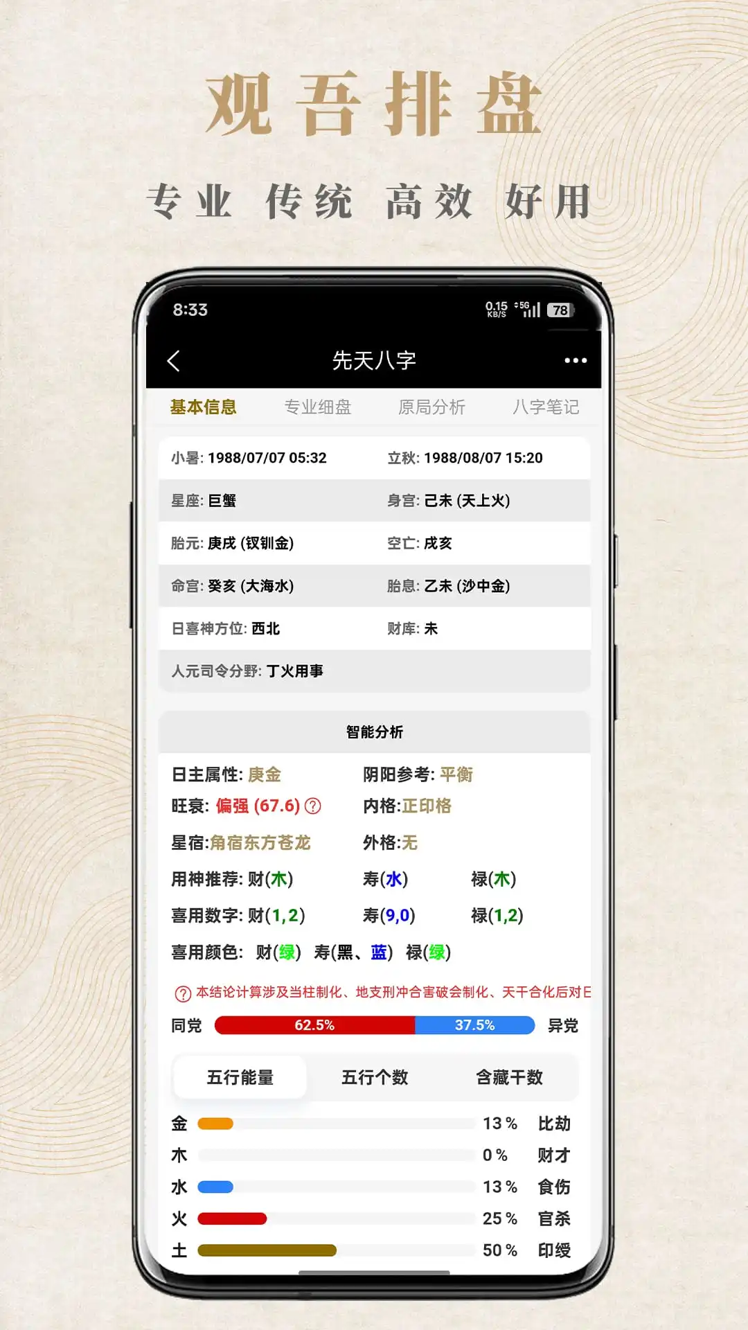 采用自主研发的"观吾算法",确保排盘结果的准确性和可靠性