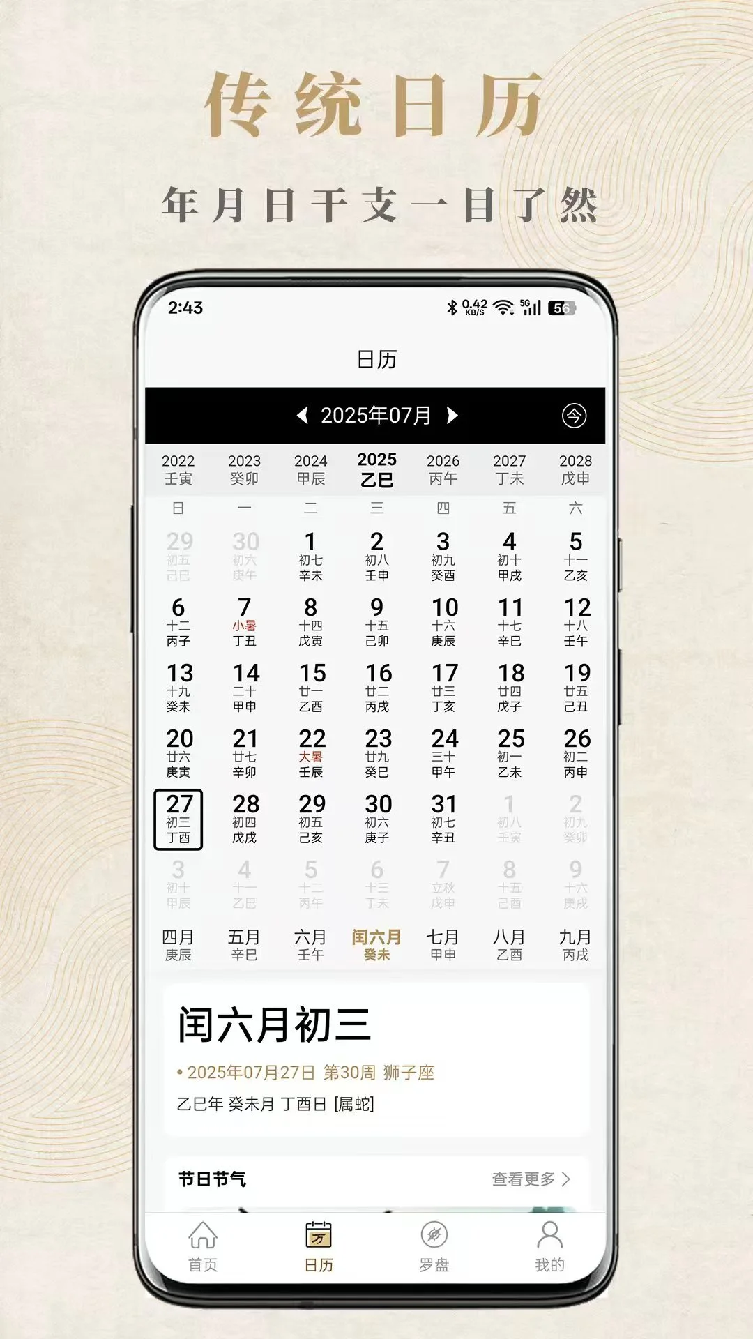 内置干支历法系统,可快速查询任意日期的干支信息