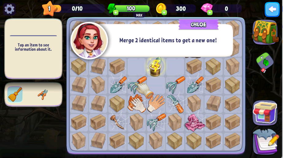 进入游戏后,你将置身于一个充满万圣节元素的古老宅邸,跟随引人入胜的剧情展开探索。在地图中仔细搜寻各类道具方块,通过智慧将相同或特定道具进行合并,创造出更有价值的新物品。游戏过程中要留意每个道具的独特属性,合理规划合并顺序才能事半功倍。