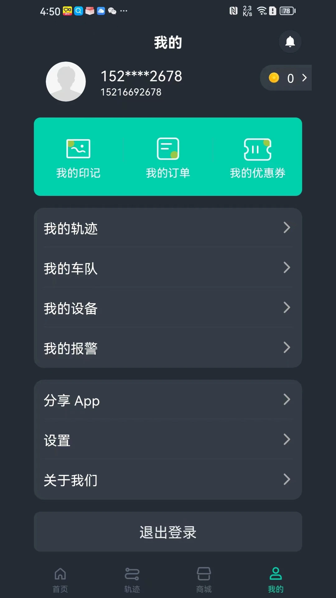 4,支持用户随时了解车辆定位,查询行车轨迹,可以查询近半年的历史行车轨迹,随时了解爱车动向;