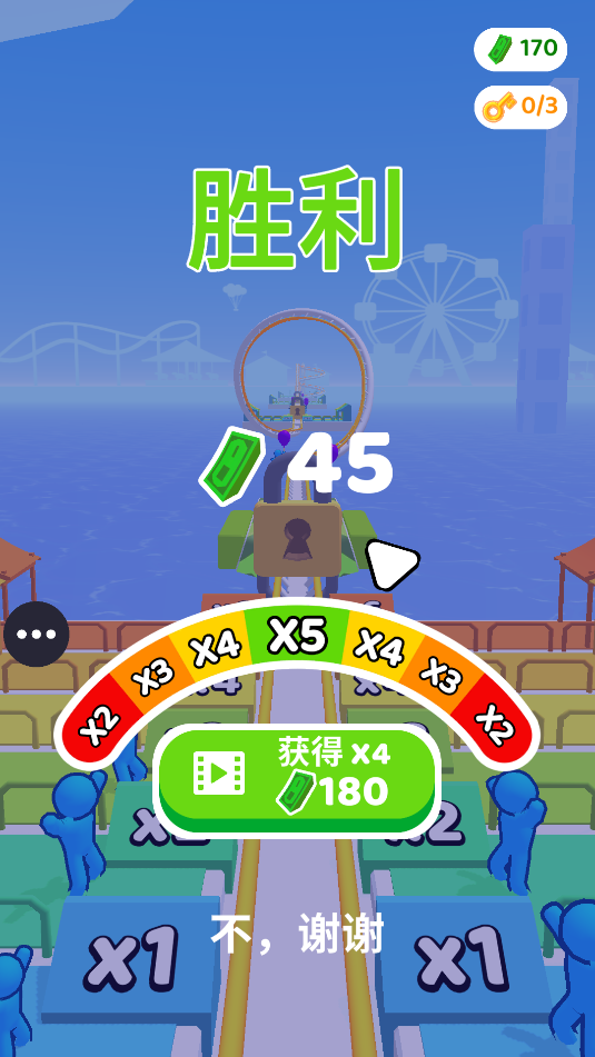 游戏操作简单直观,打开游戏后通过滑动屏幕即可控制过山车移动方向。在分岔路口时,需要向右滑动选择游客更多的路线,因为接载的游客数量直接影响最终得分。游戏过程中要时刻注意躲避突然出现的障碍物,包括落石、飞鸟等随机事件。成功将过山车安全驾驶到终点即可通关,随着关卡推进,轨道设计会越来越复杂,需要玩家不断提升操作技巧。