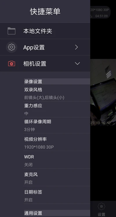远程控制设置,用户可通过手机调整记录仪的拍摄参数和模式。
