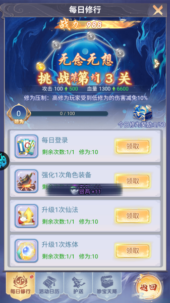 新手玩家进入游戏后,建议先跟随系统指引完成新手教程,这能帮助快速掌握基础操作和游戏机制。完成教程后,优先推进主线剧情任务,这是获取经验值最快捷的途径,能让你迅速提升等级,解锁更多核心玩法系统。在初期阶段,系统会赠送一只基础灵宠,建议集中资源优先培养这只灵宠,同时坚持完成每日的灵宠任务,这样可以稳定获取培养材料,为灵宠的快速进阶打下基础。此外,每日的日常任务和活跃度挑战是获取各类资源的重要来源,务必按时完成,这些资源将为角色后期的成长提供坚实保障。