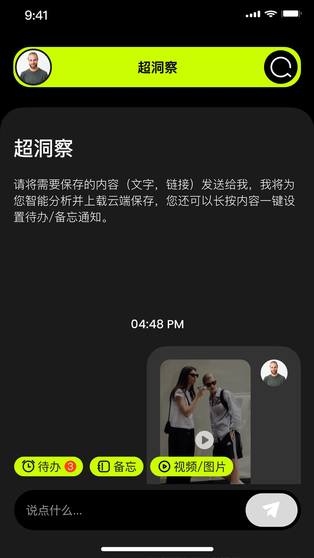 超洞察是一款集多功能于一体的高效生产力工具,旨在帮助用户轻松管理日常任务和信息。无论是工作、学习还是生活,超洞察都能通过本地内容保存、待办事项管理和备忘录等核心功能,为用户提供便捷的解决方案。其简洁直观的界面设计,搭配强大的技术支持,让用户能够快速上手并高效使用。超洞察致力于通过智能化的方式优化时间管理,提升用户的工作效率和生活质量,成为您不可或缺的得力助手。
