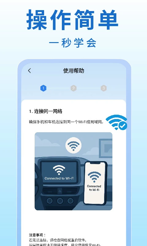 -高清稳定,畅享体验:采用先进的投屏技术,确保投屏过程中画质清晰,响应速度流畅,即使在复杂的网络环境下,也能为你提供稳定、优质的投屏操控体验,让你在车内也能享受如同在手机上的视觉感受。