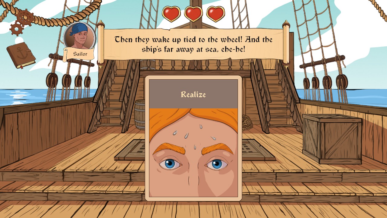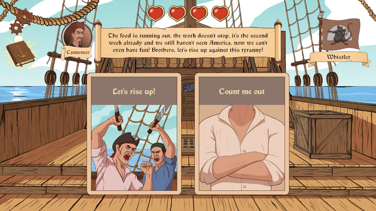 进入游戏后,点击主界面上海浪轻拍的Play按钮,即可开启这段扣人心弦的荒岛冒险。游戏采用独特的卡牌式交互界面,让玩家能够轻松上手。在航程中,当遇到需要水手的紧急情况时,玩家需要在擦洗甲板与回忆往事之间做出抉择,每个选择都会影响后续剧情发展。与船员对话时,选择是否追问美洲航行的真相,将决定你能否解锁隐藏故事线。而当发现厨师偷窃食物时,不同的处理方式会引发连锁反应,让玩家深刻体会到选择的重要性。
