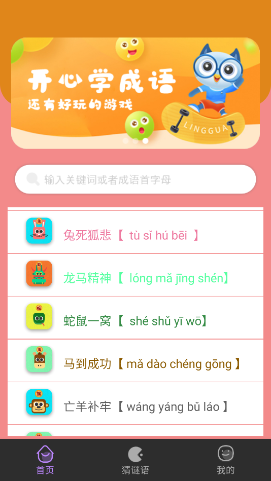 采用沉浸式互动教学法,通过3D动画还原成语典故场景,让孩子身临其境感受成语背后的历史文化。精选的成语库持续更新,不仅包含课标要求内容,还拓展了生活常用成语和经典名句。针对不同年龄段设置分级学习系统,从看图认词到理解运用循序渐进。每个成语都配有原创历史小剧场,由专业配音演员演绎,既传授知识又培养文化素养。特别设置的亲子互动模式,让家长可以陪伴孩子一起学习,增进亲子交流。