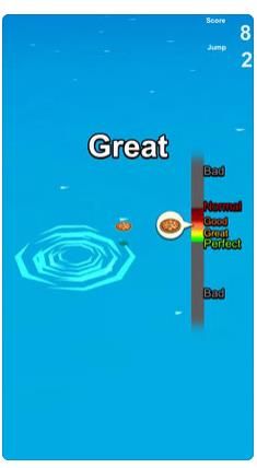 游戏操作简单易上手但富有挑战性。首先,在游戏开始界面选择您心仪的石块,不同石块拥有不同的重量、形状和弹跳特性。进入游戏场景后,通过手指滑动屏幕来蓄力,观察力度条选择合适的力度将石块弹出。特别需要注意的是,在石块即将接触水面的瞬间,系统会显示判定区域,玩家需要精准点击屏幕让石块落在【Good】【Great】或【Perfect】区域内,这样才能获得最佳弹跳效果。游戏结束后,系统会详细记录您的得分、弹跳次数和获得的成就徽章等信息。如果创造了新纪录,还可以通过社交平台分享给好友,邀请他们一起挑战。