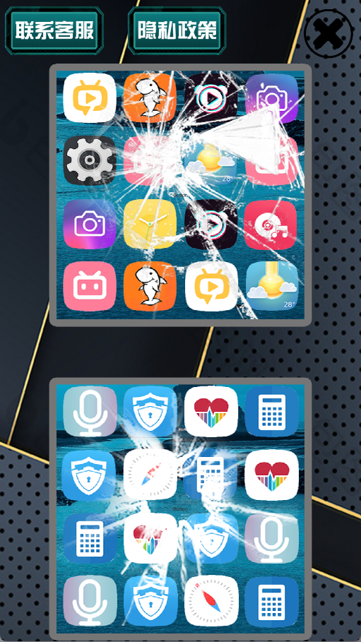 《碎屏整蛊模拟器》的最大亮点在于其震撼的视觉效果,碎屏效果能够完全覆盖整个屏幕区域,视觉效果极其逼真,很容易就能达到预期的整蛊效果。游戏作为一款专业的恶作剧工具,能够快速模拟各种屏幕破裂状态,从轻微的裂痕到完全粉碎的效果应有尽有,而且触发方式简单灵活,只需轻点屏幕即可。游戏还不断更新内容,支持玩家解锁更多新奇玩法和碎屏样式,持续丰富整蛊选择,确保每次使用都能带来新鲜感,避免体验过程变得单调乏味。