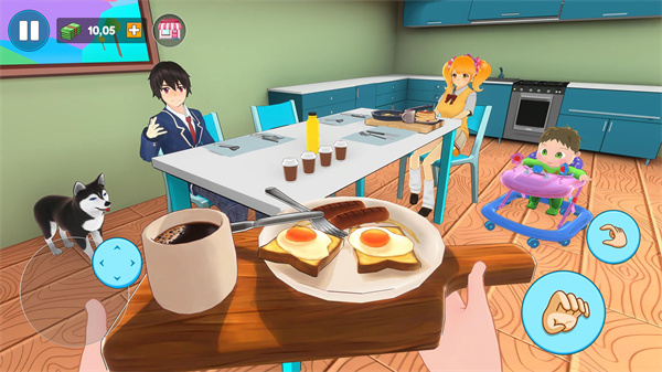 这款游戏里运用了3D的画面环境来设计展现出来的,可以让玩家体验日常生活中的家务与细节。画面表现力出色,角色动作流畅自然,场景细节丰富,光影效果真实。 玩家可以按照屏幕上显示出来的指示来移动角色,然后把角色移动到对应的位置上来完成任务。操作方式简单直观,触控反馈灵敏,即使是新手也能快速上手。 在游戏里还可以通过完成家务以及带小孩的任务挑战,来获取到丰富的奖励来帮助解锁新挑战。任务系统设计合理,奖励机制公平,玩家付出与回报成正比。 游戏内玩家还需要与自己的孩子来进行互动增加情感,体验这个游戏还能够不用连网就可以玩。亲子互动内容丰富,从简单的拥抱到复杂的益智游戏,都能增进亲子关系。离线模式功能完善,随时随地都能享受游戏乐趣。
