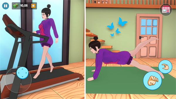 在的过程中玩家还可以完成家务来提升自己的造型锻炼身材,这样还能获得丰富的金钱奖励来更好的完成目标任务挑战。家务系统设计巧妙,将现实生活中的清洁、烹饪等环节转化为有趣的游戏玩法。完成家务不仅能获得奖励,还能解锁新的家居装饰和服装道具。
