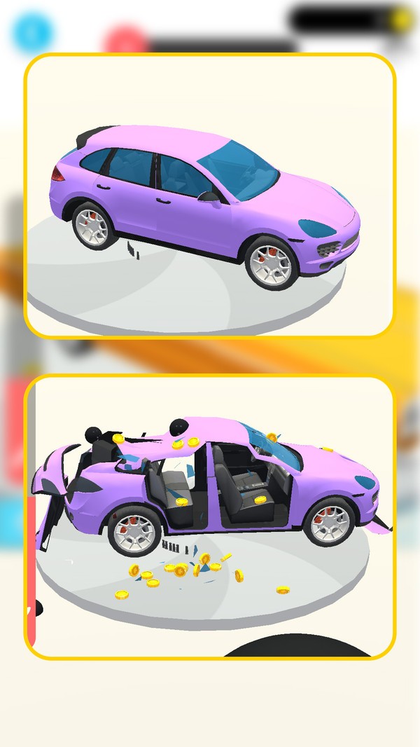 视觉表现高清细腻,卡通画风活泼生动,每次改造改装过程轻松欢乐,营造愉悦的视觉享受和氛围。游戏中的爆炸特效和碎片飞溅效果都经过精心设计,带来震撼的视觉冲击。解压效果显著直接,体验过程帮助释放情绪,提供有效的放松渠道,适合需要缓解压力的使用者。研究表明,适度的虚拟破坏行为确实能帮助减轻现实生活中的压力。车型收集系统完善,大量车辆可供解锁收藏,满足使用者的收集欲望,增加持续参与动力。从普通轿车到豪华跑车,甚至工程车辆,应有尽有。破坏方法多样灵活,包括直接敲击撬开或引爆特效,根据情况选择时机达到最佳破坏表现。玩家可以自由组合不同工具,创造出独特的破坏方式。