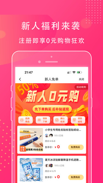 安装完成后同意用户协议即可快速进入主界面,简洁明了的布局让操作零门槛。首页会智能推荐当下最热门的优惠商品,通过分类检索或搜索框都能快速定位目标商品。系统还会根据浏览记录个性化推送专属优惠,每件商品都清晰标注券后价和历史价格曲线,助你轻松做出省钱决策。