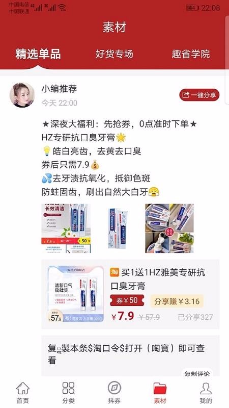 支持收藏商品功能,一键完成收藏或取消操作,配合专业的交易模式,让购物管理更便捷。平台精选单品和好货专场,提供精美的推荐图文素材,并附带直接购买链接,方便用户一键转发分享给好友。趣省学院定期推送实用的赚钱知识和省钱技巧,帮助用户掌握更多平台功能,提升使用体验。
