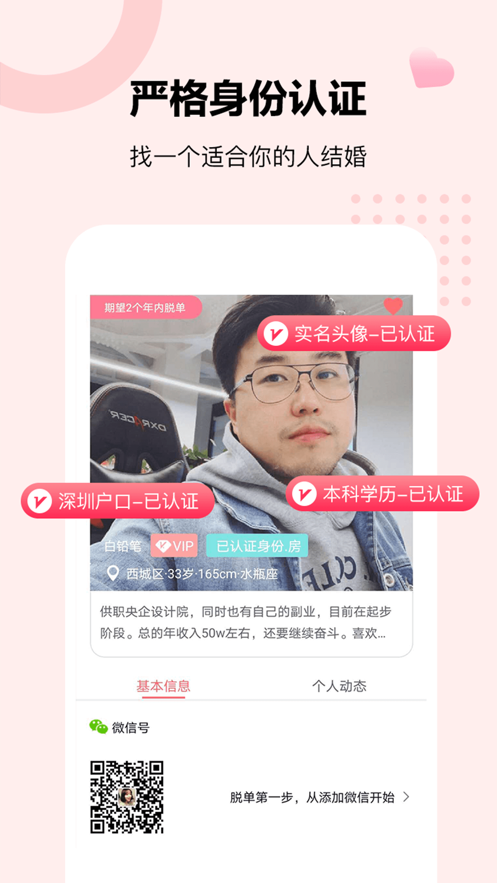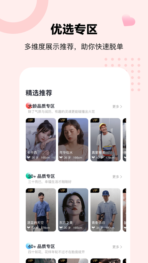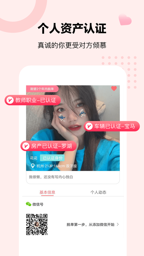 【相亲】红娘与男女嘉宾三人相亲,真实在线交友,抵制照骗。平台采用视频认证机制,确保每位用户的照片与真实形象一致,杜绝虚假信息。