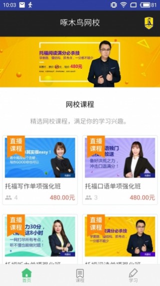 《啄木鸟网校》是一款功能强大的在线学习平台,为用户提供海量优质课程资源。在这里,你可以轻松搜索并学习感兴趣的课程内容,支持一键下载功能,让你随时随地都能开启学习之旅。无论是通勤路上还是休息时间,都能利用碎片化时间提升自我。平台涵盖多领域知识体系,满足不同用户的学习需求,让知识获取变得更加便捷高效。