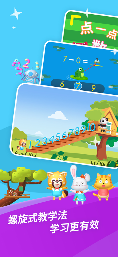 专业教学:课程编排科学权威,以国家发布的儿童学习与发展指南为标准,紧贴2-8岁儿童数学教学大纲,同时产品既有多种数学思维知识点的横向拓展,又有由易到难的纵向延伸,将数学思维知识的宽度、厚度和精度完美结合,将抽象的逻辑思维融于具体的形象感知,让儿童在理解的基础上充分掌握数学思维知识,促进儿童数学素养的全面发展。课程采用多媒体互动形式,通过动画、游戏等元素增强学习趣味性,确保孩子在快乐中学习,在学习中成长。