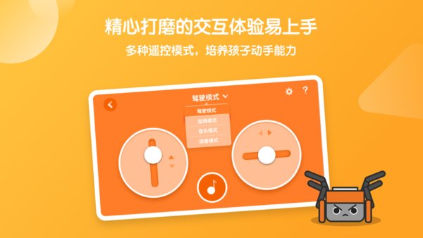 应用内包含五种主要玩法模式:驾驶模式让孩子体验机器人操控的乐趣;飞行模式培养空间感知能力;巡线模式训练观察力和精确控制能力;音乐模式激发艺术创造力;语音模式则提升语言表达能力。这些多样化的玩法不仅能保持孩子的学习兴趣,还能全方位开发各项潜能。
