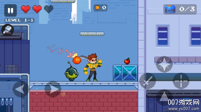 打开游戏Touchtostart进入到页面中,首先会看到精美的游戏主界面,背景音乐营造出紧张刺激的氛围。选择可玩的关卡即可快速进入到游戏,每个关卡都有独特的场景设计和敌人配置。接着通过左右键来角色移动,操作简单易上手但需要熟练掌握才能应对各种挑战。遇到敌人时则需要合理的使用右下角的技能键攻击,不同技能组合可以产生意想不到的效果。走到带有感叹号的地方则可以对武器属性进行加成,这些强化点往往隐藏在关卡的关键位置。需要注意右上角红心的变化,拾取苹果可以补充血量,合理规划路线收集补给是通关的关键。