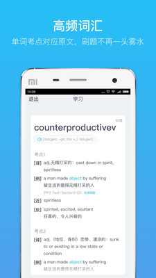 全面而高效的词汇覆盖:收录了与GRE考试相关的高频词汇,包括词汇解释、例句和同反义词等,帮助考生全面掌握词汇知识。词库按照考试频率和难度分级,用户可以有针对性地重点突破薄弱环节,实现精准提分。