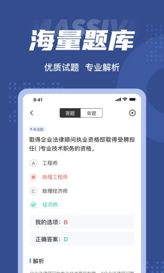 初级经济师题库含有考试点训练,全国各地通用性卷以及地域卷模拟训练,以及按照固定考试比例的任意式的抽题的考试真题考试场,表即时纪录考试数据信息,一点一滴的意见反馈学生最近学习状态以及自身准确率的提高,大大地给与学生通过考试的自信心。支持顺序练习、随机练习、专项突破等多种模式,满足不同阶段的学习需求。