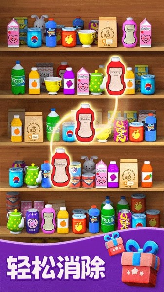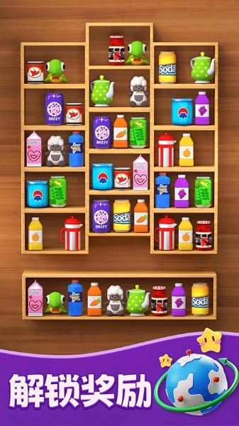 游戏的核心玩法简单易上手,玩家只需将三个相同的物品移动到同一个货柜中即可完成消除。当成功消除所有物品后,玩家将获得星星作为通关奖励。这些收集到的星星可以用来开启神秘的星星宝箱,获得各种惊喜奖励。随着游戏的深入,玩家将逐步解锁更多强力道具,这些道具在遇到困难关卡时能发挥关键作用,帮助玩家顺利过关。游戏还设有每日任务和特殊活动,让玩家每天都有新的挑战和收获。
