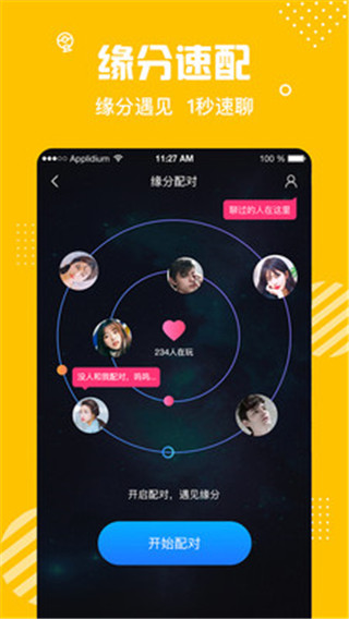 【视频聊天】创新的缘分视频功能,一键匹配有缘人。面对面视频交流更加真实自然,百变陪玩模式让交友过程充满乐趣,真正实现零距离社交。