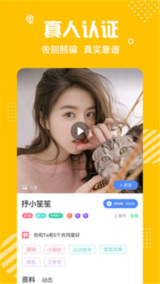 【同城交友】通过精准的地理位置定位,轻松查找附近的人,特别是可以匹配到同城的单身女生。所有用户都经过实名认证,告别"见光死"的烦恼。如果遇到心仪对象,不妨约个饭、看场电影,开启一段浪漫的恋爱之旅。