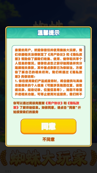 安装完成后,首次打开游戏时需要仔细阅读并同意用户协议