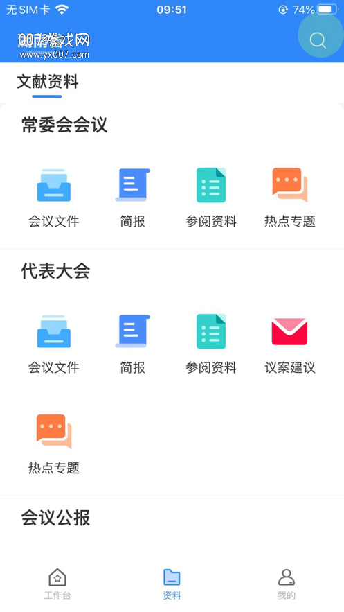 湖南智慧人大是一款以"智慧人大"建设为核心理念的综合性移动应用,采用模块化设计思路,包含工作台、资料中心和个人中心三大功能板块。工作台作为核心功能区,集成了立法工作、监督工作、代表履职、机关办公等专业模块;资料中心则系统收录了常委会会议记录、代表大会资料、会议公报等权威文件;个人中心不仅提供收藏管理、活跃度统计等实用功能,还支持个性化设置和个人信息展示,全方位满足人大工作人员的日常办公需求。