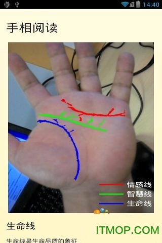 手相大师app破解版是一款功能强大的手机应用,通过先进的图像识别技术,只需用手机拍照即可获得精准的手相分析结果。该应用能够详细解析手掌中的每条纹路,包括生命线、智慧线和感情线,并为你提供专业的运势解读。无论你是想了解自己的性格特点、健康状况还是爱情运势,这款应用都能给出令人信服的分析报告。喜欢探索手相奥秘的朋友们,现在就可以在IT猫扑平台下载体验这款神奇的应用!