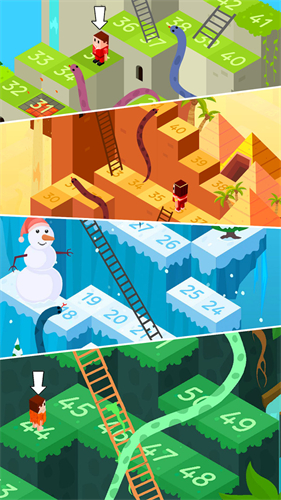 玩家需要通过掷骰子来决定前进的步数,在移动过程中要仔细观察地图布局。合理规划路线避开陷阱,抓住机会利用梯子快速上升,才能更高效地完成关卡。