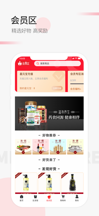 会员区域:专为VIP会员打造的高品质购物专区,包含限量商品和会员专享折扣,购物还能获得额外通证奖励。