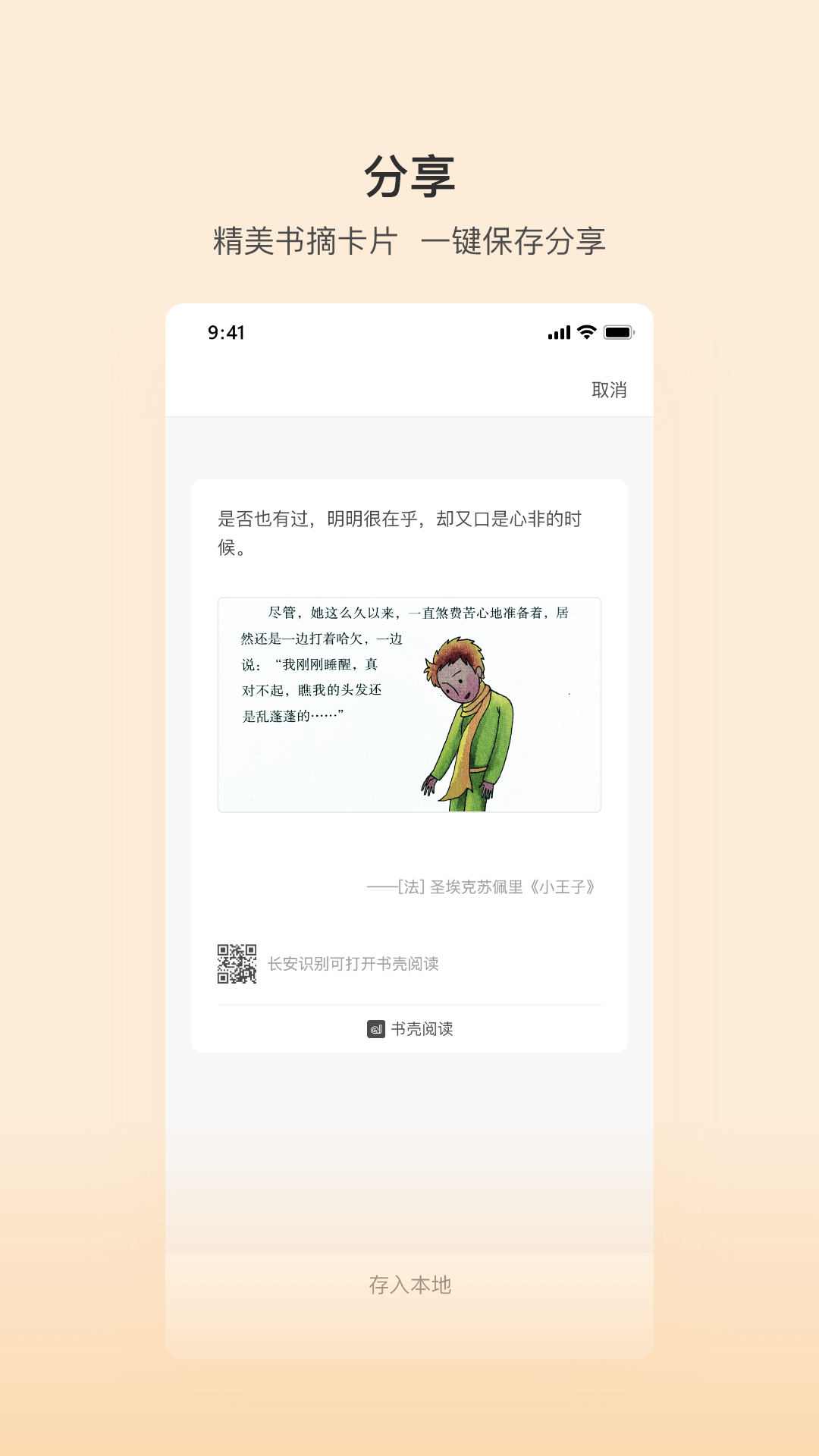 分享功能:支持生成精美书摘卡片,一键保存或分享至社交平台,展现阅读品味