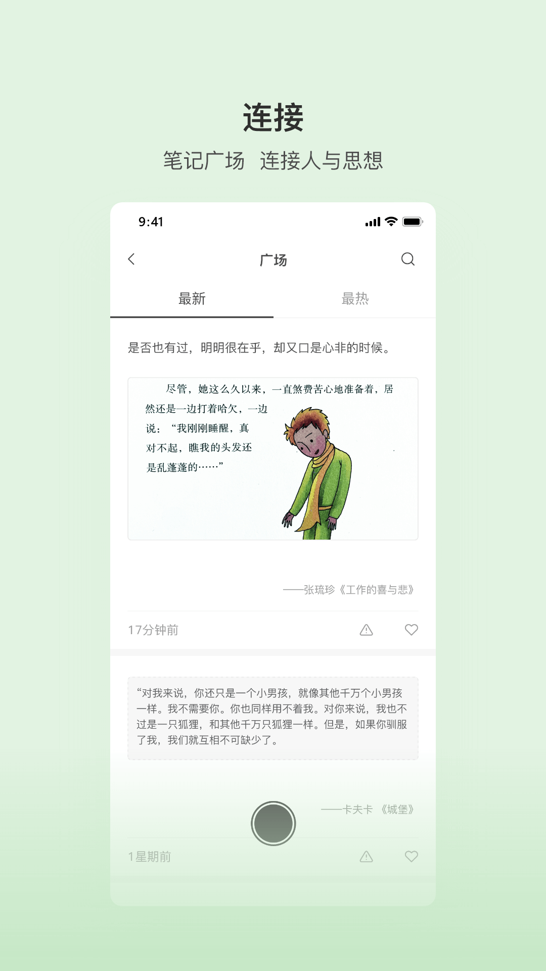 连接功能:独特的笔记广场功能,连接志同道合的阅读者,碰撞思想火花