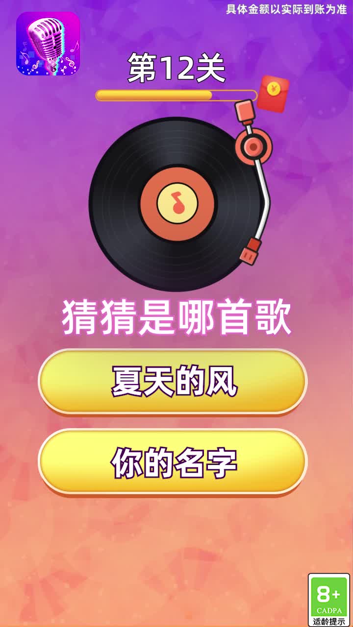 还在等什么?快来体验这款能赚钱的音乐游戏!猜对歌名就能获得现金红包,奖励直接发放到微信钱包。无需绑定银行卡,不用实名认证,提现秒到账!游戏采用阶梯式奖励机制,猜对的歌曲越多,赚取的金额就越高,最低0.3元起提现,让每个玩家都能轻松获得收益。