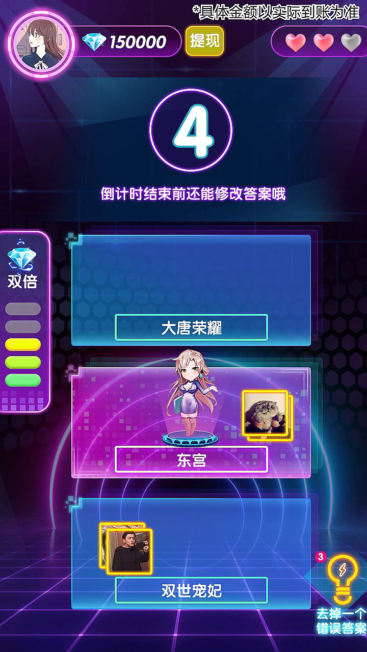 游戏贴心地为玩家准备了复活机制。当你不小心猜错歌曲时,可以通过观看激励广告获得一次复活机会。如果不选择复活,连对奖励将会重置,这意味着你将错失当前的奖励累积。随着游戏进程的推进,当达成特定条件时,玩家可以从账户中提现不同金额的奖励,真正实现边玩边赚。