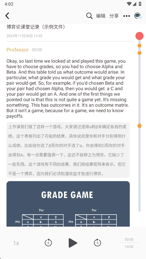 点开可以看到有录音,有文本,还有翻译和