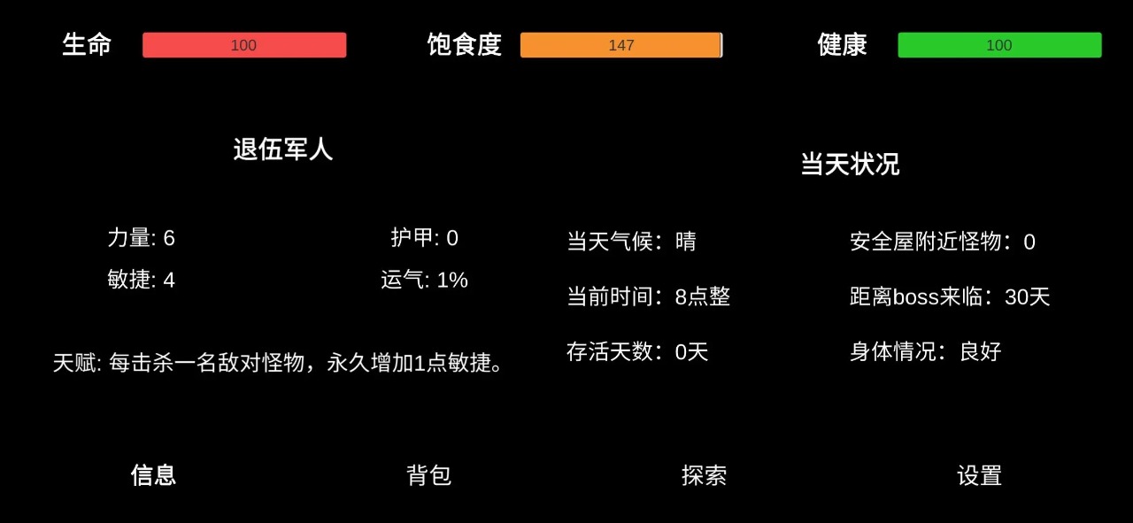 游戏将玩家置身于一个资源枯竭、文明崩塌的末日世界,人类正面临灭绝的危机。通过细腻的文字描述,游戏完美再现了末日求生的紧张氛围,让人不禁联想到经典生存作品。游戏创新性地将文字冒险、资源收集、生存策略等元素完美融合,打造出一个充满挑战的末日沙盒世界。