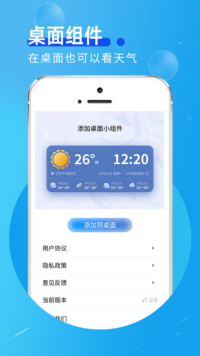 全国各地天气信息都能直接查询的,可以直接在线进行位置切换使用的;支持自动定位功能,快速获取当前位置的天气状况。在线使用很方便的,这里的天气数据实时更新,查看更方便!数据更新频率高达每小时一次,确保信息的及时性。当天的全部天气信息都会提前了解的,大家可以直接查看温度变化情况;还提供未来15天的天气预报,帮助用户做好长期规划。