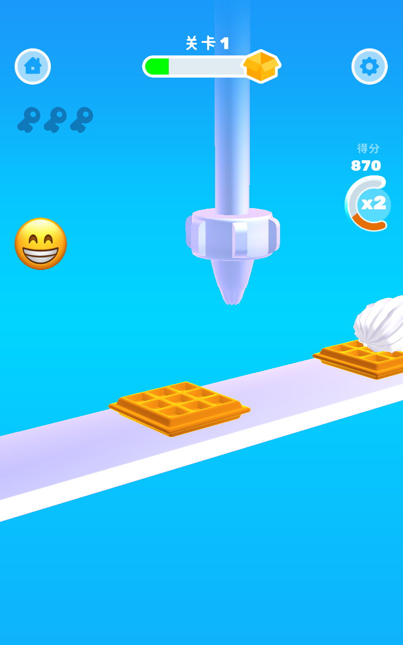 直观挤奶操作:通过点按屏幕控制奶油流速,长按调整挤出长度,双指滑动可旋转甜点角度,物理引擎实时反馈奶油塌陷效果。游戏还支持压感笔操作,专业玩家可以绘制更精细的装饰图案。操作界面简洁直观,新手也能快速上手。