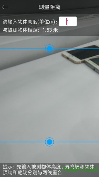 距离测量:输入已知物体高度,自动计算水平距离,适用于户外测绘等场景。