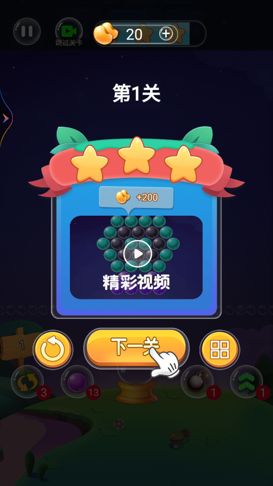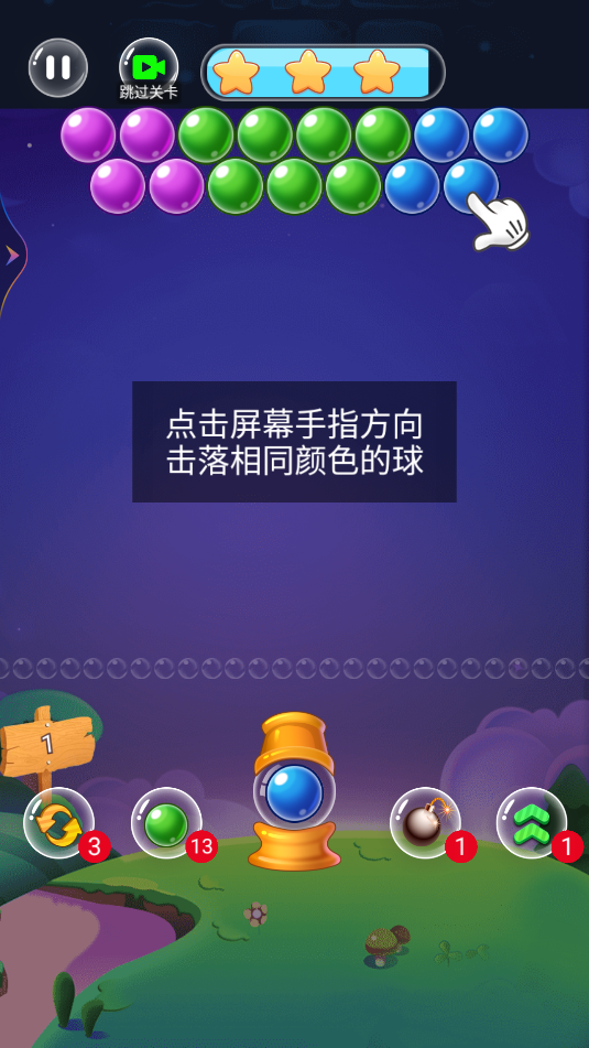 打开游戏后,点击醒目的播放按钮即可进入关卡选择界面。游戏贴心地为新手玩家准备了1-50关的入门关卡,建议从第一关开始逐步熟悉游戏机制。在游戏中,玩家需要仔细观察炮塔当前的泡泡颜色,通过滑动屏幕调整发射角度,精准地将泡泡射向同色泡泡群。当成功消除所有目标泡泡后,系统会自动判定通关,并解锁下一关卡。值得注意的是,某些特殊关卡可能需要玩家优先消除特定颜色的泡泡才能顺利通关。