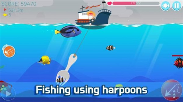 垂钓探险游戏使用具有不同功能的矛,尽可能多地用鱼射击矛就完成钓鱼了。游戏提供了多种专业钓具,每种都有独特的属性和使用技巧。玩家可以根据目标鱼种选择合适的装备组合。