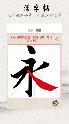 独创的书法技巧训练模块,通过分解练习帮助用户掌握核心技法。系统会根据学习进度智能推荐适合的练习内容,循序渐进地提升书法水平。