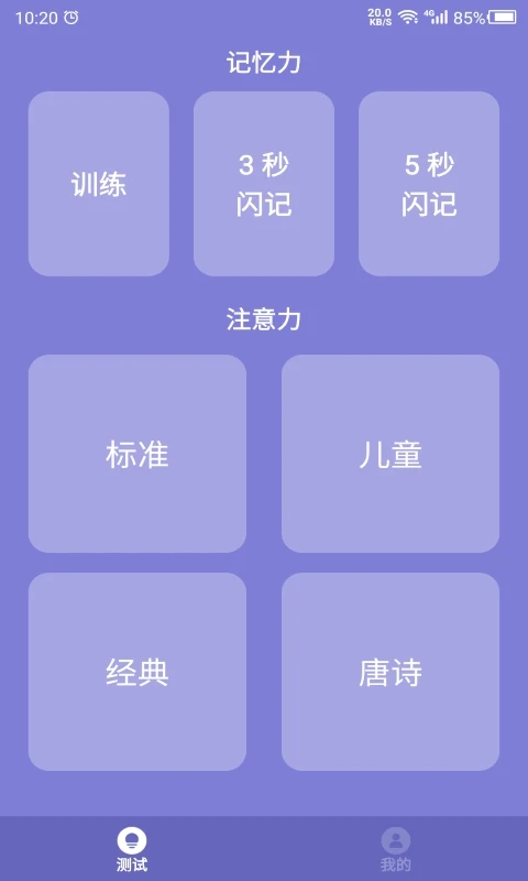 记忆力训练种类丰富多样:包括随机数字记忆、二进制记忆、随机词组记忆、电话本记忆、车牌号记忆、邮政编码记忆、字母记忆和数字空间等。每种训练都针对不同的记忆能力进行专项提升。注意力训练同样精彩,包含找不同色、找不同字、找不同数字和经典的舒尔特方格等。这些训练能有效提高你的专注力和观察力。