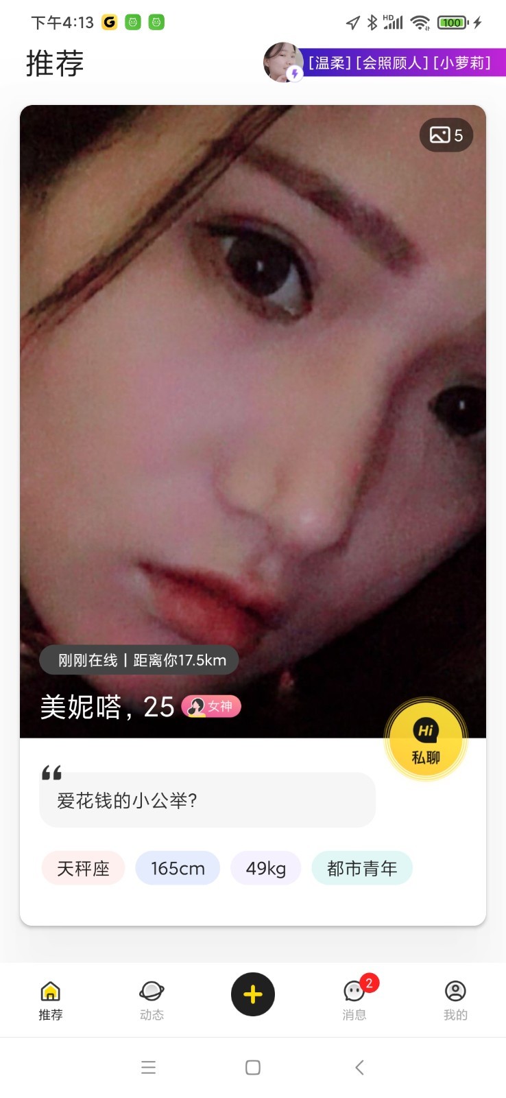 提供优质的同城交友服务,汇聚众多高颜值用户,让你轻松找到心仪对象;智能推荐系统帮你匹配有趣的灵魂,告别单身烦恼;全天候交友服务,无论何时何地都能找到合适的聊天伙伴,涵盖各种性格类型,满足不同社交需求。
