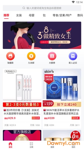 领券秒杀——覆盖天猫淘宝全品类优惠券,先领券再购物更划算;9元秒杀——精选优质商品超低价促销,全国包邮无门槛;内部折扣——独家内部优惠渠道,品质保证价格更优;人气推荐——根据大数据分析推荐爆款商品,正品保障售后无忧。