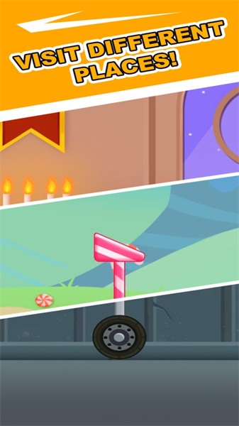 单轮平衡骑行:游戏的核心玩法是控制单轮自行车在各种复杂地形上保持平衡并前进。玩家需要通过精准的点击操作来调整车辆重心,应对上下坡、急转弯、跳跃平台等不同情况。随着游戏进程,玩家将解锁更多高难度技巧,如空中转体、特技跳跃等,大大提升游戏的可玩性。