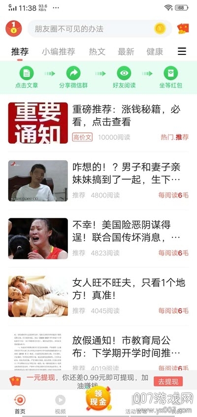 首先,平台为新用户准备了丰厚的注册红包,让每位新用户都能获得良好的第一印象。其次,软件内提供的所有文章内容都经过严格筛选,确保内容健康优质,分享时不会被屏蔽。最重要的是,用户只需将感兴趣的文章转发至微信群或朋友圈,每当有好友点击阅读,就能获得0.6元的现金奖励。平台还设有丰富的活动专区,参与各种限时活动可以赚取更高收益。